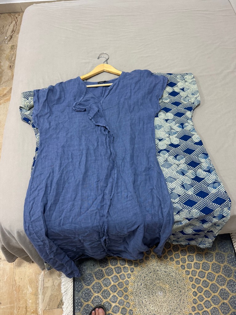 On a different day, I stumbled out of the heat into a store like an African Target. I’m so familiar with stumbling out of the cold, but stumbling out of the heat is a new experience. At this store, I found a less ornate version of the same brand of fabric that I loved, and I bought it without hesitation. When I got home, I realized two different fabrics were in the precut package I purchased, which was even better.